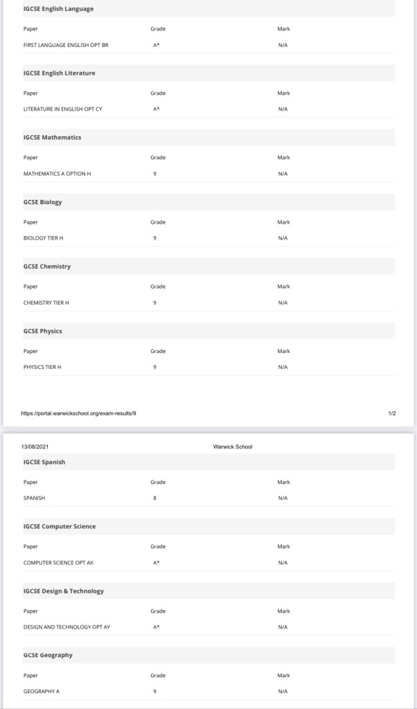 He had also achieved an A in is ‘A’ Level EPQ and was on target to achieve his predicted 4 x A ‘A’ Levels in 2023.