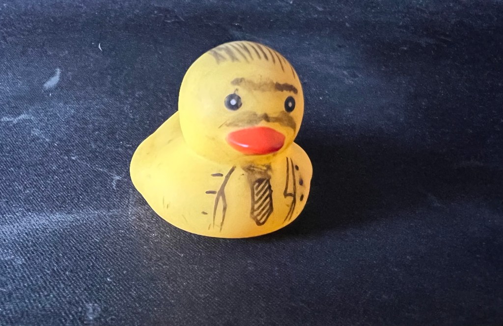 He drew on moustaches, clothes, beards, and jewellery! And then, once he was happy with how his fleet of ducks looked, he proceeded to hide them all around the classroom!